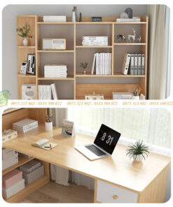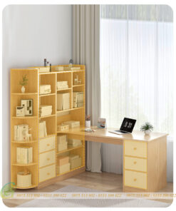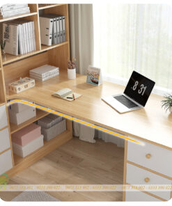 Bàn Học Kèm Kệ Sách Hiện Đại BH-35 là bàn học được thiết kế đi kèm với kệ sách lớn hiện đại. Với thiết kế chữ L giúp tiết kiệm diện tích, không gian lưu trữ trên kệ sách lớn. Thuận tiện để sách, vật dụng trang trí, … Bên cạnh đó còn đi kèm 1 tủ nhỏ có 3 hộc kéo để lưu những vật dụng cá nhân cần thiết. Bàn học này thích hợp với mọi lứa tuổi, phù hợp với mọi không gian.
