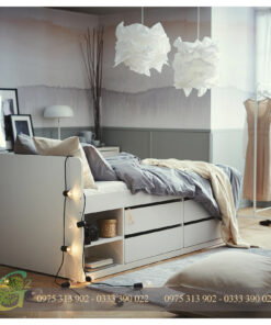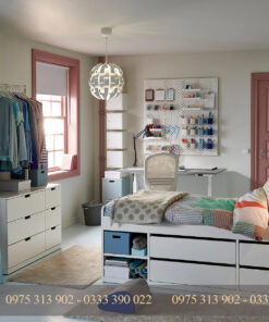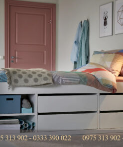 Các ngăn kéo rất dễ mở và đủ rộng rãi để có chỗ cho đồ chơi, quần áo và các đồ dùng khác mà các bạn tuổi teen, trẻ em thường thích “cất” trên sàn. Các cạnh mềm mại, tay cầm lõm vào và chỉ một số phụ kiện có thể nhìn thấy giúp khung giường an toàn và tạo cho nó một thiết kế sạch sẽ.