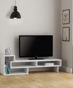 Kệ tivi này được thiết kế với phong cách tối giản nhất, nhưng không kém phần hiện đại. Với thiết kế này, kệ tivi phù hợp với các không gian nhỏ. Với các kệ để lưu trữ các vật dụng cần thiết hoặc trang trí đơn giản tạo điểm nhấn cho căn phòng khách của mình.