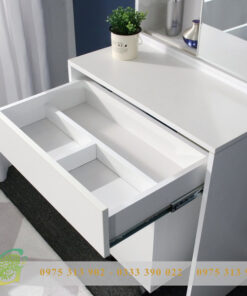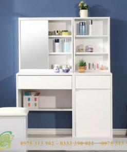 Bàn trang điểm này được thiết kế theo phong cách tối giản, với thiết gương trượt hiện đại, giúp dễ dàng di chuyển gương sang trái hoặc phải theo ý thích. Và với phong cách đơn giản này giúp chiếc bàn này phù hợp với mọi không gian.