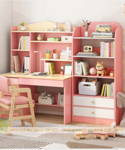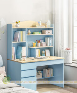 Bàn Học Trẻ Em Có Giá Sách Hiện Đại BH-21 là bàn học được thiết kế phù hợp với trẻ em và mọi lứa tuổi, với giá sách tiện lợi. Dễ dàng lưu trữ các loại sách vở thuận tiện trong quá trình học tập, hoặc trung bày những vật dụng trang trí. Tạo không gian học tập, làm việc mới mẻ, thoải mái. Với thiết kế bàn học này, có chân gác phía dưới chỗ ngồi, tạo sự thoải mái khi học tập, làm việc; và bên trái có tủ để lưu trữ những vật dụng cần thiết.
