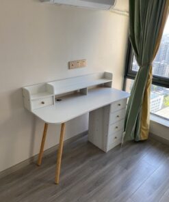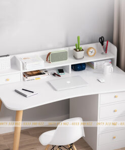 Bàn Học Hiện Đại Gỗ Công Nghiệp BH-28 là bàn học được thiết kế với xu hướng đơn giản, nhưng không kém phần hiện đại. Với chân bàn được thiết kế 2 chân tròn dài, tạo sự nhẹ nhàng nhưng không kém phần vững chắc. Bên cạnh đó là 1 tab nhỏ dùng làm chân bàn, được thiết kế với nhiều hộc kéo nhỏ tiện lợi, giúp bạn lưu trữ những vật dụng cá nhân cần thiết. Tạo cho không gian phòng của bạn 1 sự ấm áp, nhẹ nhàng và vô cùng hiện đại.