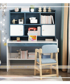 Bàn Học Kèm Giá Sách Cho Trẻ Em BH-22 là bàn học được thiết kế với phong cách cá tính, kèm giá sách tiện lợi. Tạo không gian làm việc, học tập thoải mái, với không gian lưu trữ lớn. Dùng để lưu trữ sách, vật dụng trang trí. Với 2 bên cửa dùng để lưu trữ những “bí mật” của riêng bạn.