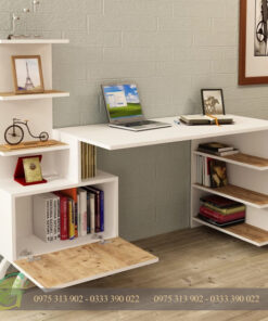 Bàn học Olivia với quan điểm tối giản: Bàn Olivia, nổi bật với thiết kế tiện dụng, là sản phẩm thu hút sự chú ý với dáng đứng thanh lịch. Các giá đỡ bên trong bàn làm việc tiết kiệm không gian trong phòng và có thêm không gian để lưu trữ sách hoặc đồ dùng cá nhân. Bạn có thể sử dụng tủ sách được thiết kế theo chiều dọc và kết hợp với bàn để đựng các phụ kiện trang trí cũng như sách của bạn. Phần đóng dưới tủ sách tăng thêm vẻ thẩm mỹ cho bàn làm việc.