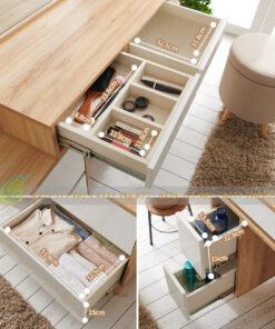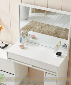 Bàn trang điểm này có thiết kế đơn giản, tuy không phải mẫu mới nhưng lại là sản phẩm được bán chạy nhất. Với phong cách phù hợp với mọi không gian, tiện ích để lưu trữ nhiều vật dụng cần thiết của phái đẹp.