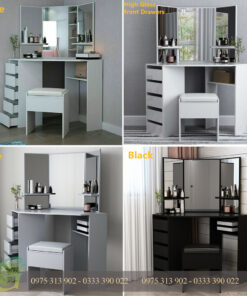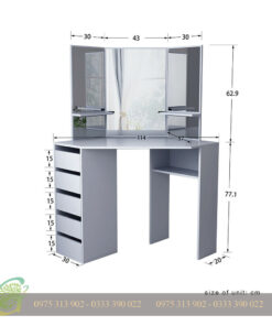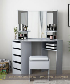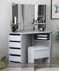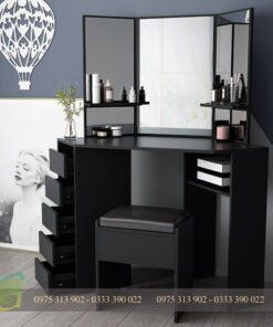 - Đủ dung lượng lưu trữ: Bàn trang điểm lớn có 5 ngăn kéo, 3 gương soi, sự kết hợp của 3 gương là kết cấu uốn cong, giúp bạn có tầm nhìn rộng.