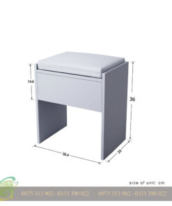 - Ghế đẩu trang điểm: Phân trang điểm được làm đầy bằng bọt biển mật độ cao và không bị xẹp. Mặt ghế được làm từ chất liệu giả da. Nó mềm mại và thoải mái khi ngồi, thời trang và linh hoạt.