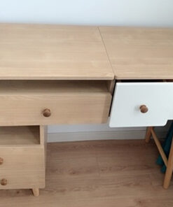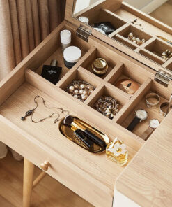 Bàn trang điểm này được thiết kế với cách cổ điển và tích hợp làm bàn làm việc phù hợp với những căn phòng hạn chế về diện tích.