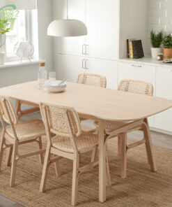 | Phủ bề mặt | Mặt bằng gỗ, sơn mài hoàn thiện, ghế tre đan hoàn thiện |
