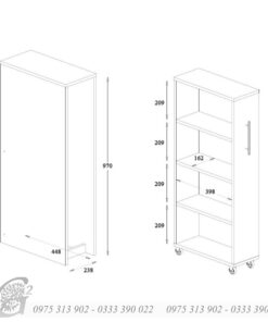 - Tủ sách đi kèm với 1 cánh cửa kéo ra với không gian giá đỡ. Mỗi tủ kéo bao gồm 4 kệ lưu trữ sách, truyện tranh, …