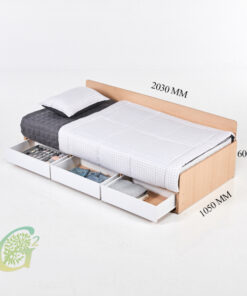 Giường Ngủ Có Ngăn Kéo Dành Cho 1 Người GN-10 là chiếc giường ngủ chỉ rộng 1,050m dành cho nhưng người độc thân hoặc dành cho căn phòng tiết kiệm diện tích. Nhưng vẫn đầy đủ tiện nghi với 3 hộc kéo dưới giường ngủ để người dùng tận dụng để lưu trữ những vật dụng như quần áo, đồ dùng cá nhân chưa dùng tới,… hoặc lưu trữ nhiều thứ cần thiết. Chiếc giường ngủ với chất liệu MDF chống ẩm phủ 1 lớp melamine chống trầy xướt, chống ẩm, dễ dàng lau chùi và phù hợp với mọi không gian.