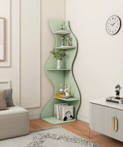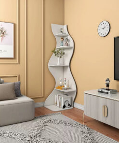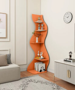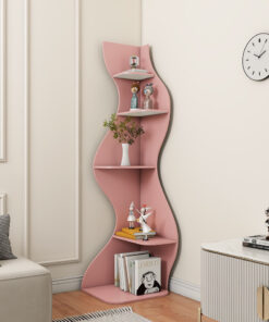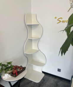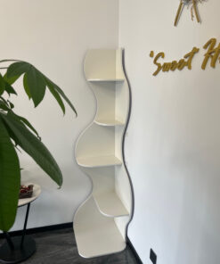 Kệ góc trang trí này được thiết kế với phong cách uốn lượn một góc tạo nên sự sang trọng hiện đại trong khoảng góc trong căn phòng của bạn. Kệ trang trí được chia thành nhiều tầng với nhiều khoảng cách khác nhau, để bạn có thể trang trí những vật dụng có kích thước khác nhau, như chai lọ, tượng trang trí, hoặc chậu cây mini tạo góc xanh của căn phòng. Kệ trang trí được tạo bằng nhiều màu sắc khác nhau và nhỏ dần từ dưới lên.