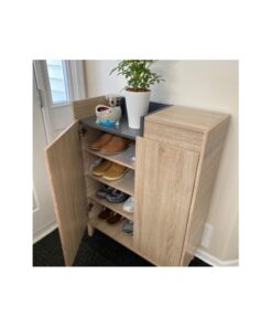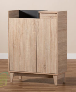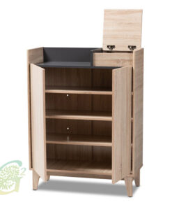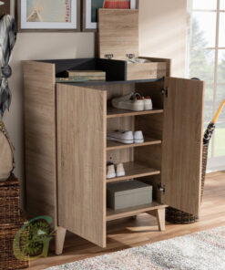 Tủ Giày Cánh Mở Hiện Mở Hiện Đại SC-10 Lấy cảm hứng từ thiết kế Scandinavian kiểu dáng đẹp, tủ giày lưu trữ giày 2 cửa này là sự bổ sung hoàn hảo cho bất kỳ lối vào nào. Nó được làm từ gỗ đã qua chế tạo và có hai tông màu là gỗ sồi và màu xám đậm, và các chân thon nhọn, góc cạnh thể hiện ảnh hưởng hiện đại của tủ giày. Mỗi cánh cửa mở ra để lộ ra năm kệ với kho chứa lên đến mười đôi giày, ủng. Ngoài ra, chiếc tủ này còn có một ngăn chứa đồ có thể nâng lên, cung cấp thêm không gian cho mũ, găng tay hoặc ví.
