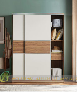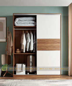 Tủ quần áo với thiết kế cửa lùa đơn giản nhưng không kém phần hiện đại. Với cách chia ngăn phù hợp để người dụng tận dụng được những khả năng lưu trữ phù hợp khi sử dung.