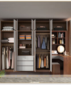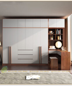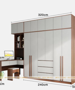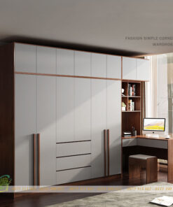 Tủ Quần Áo Kết Hợp Bàn Làm Việc Sang Trọng QA-31 là tủ quần áo được thiết kế với 2 tone màu chủ đạo là vân gỗ + trắng, tạo nên sự sang trọng cho căn phòng ngủ của bạn. Không những vậy, tủ quần áo này còn kết hợp với bàn làm việc giúp bạn tiết kiệm không ít diện tích tạo nên sự thoải mái rộng rãi. Nằm trong tủ quần áo này kết hợp với cả kệ sách, giúp bạn lưu trữ 1 ít lượng sách hoặc trang trí tạo sự mới lạ cho phòng ngủ. Đặc biệt, tủ quần áo này được thiết kế cánh mở và được chia kích thước phù hợp. Giúp bạn lưu trữ một lượng lớn quần áo cho cả gia đình.