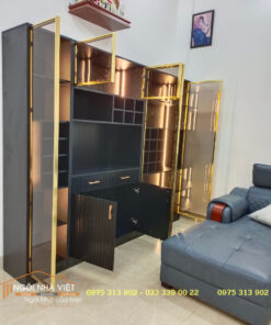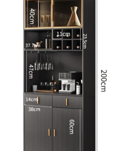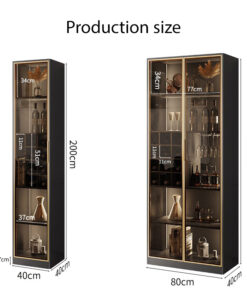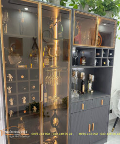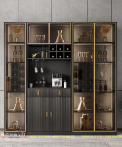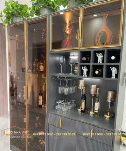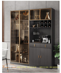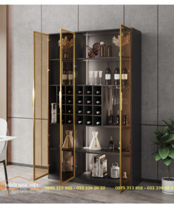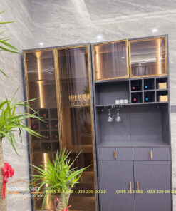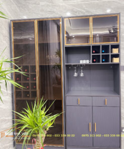 Tủ rượu này được thiết kế với phong cách đen huyền bí mà không kém phần sang trọng, hiện đại, phù hợp với mọi không gian. Khi bạn là người đam mê rượu thì không nên bỏ qua tủ rượu này. Tủ này đi với màu đen và cánh nhôm viền vàng và kính màu trà nhạt tạo nên sự sang trọng không hề khó. Đi kèm tủ là hệ đèn leb ánh sáng vàng, và 2 kệ treo ly inox 304, tạo nên sự hiện đại cho không gian phòng khách hoặc phòng bếp nhà bạn. Còn chần chừ gì nữa mà không book ngay một e tủ này về với nhà mình nào.